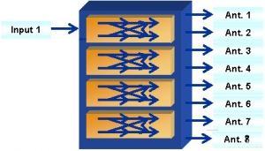 思博倫SR5500M在2007年底推出之時就考慮到TD-SCDMA智能天線的商用測試,即模塊化設計。如圖1所示,4臺SR5500M既可以供不同地點的不同團隊測試,比如測試單天線性能等,也可以組合成系統(tǒng),供同一地點的多個團隊測試單天線性能,或供同一團隊測試8天線性能,極大的提高了設備利用率: